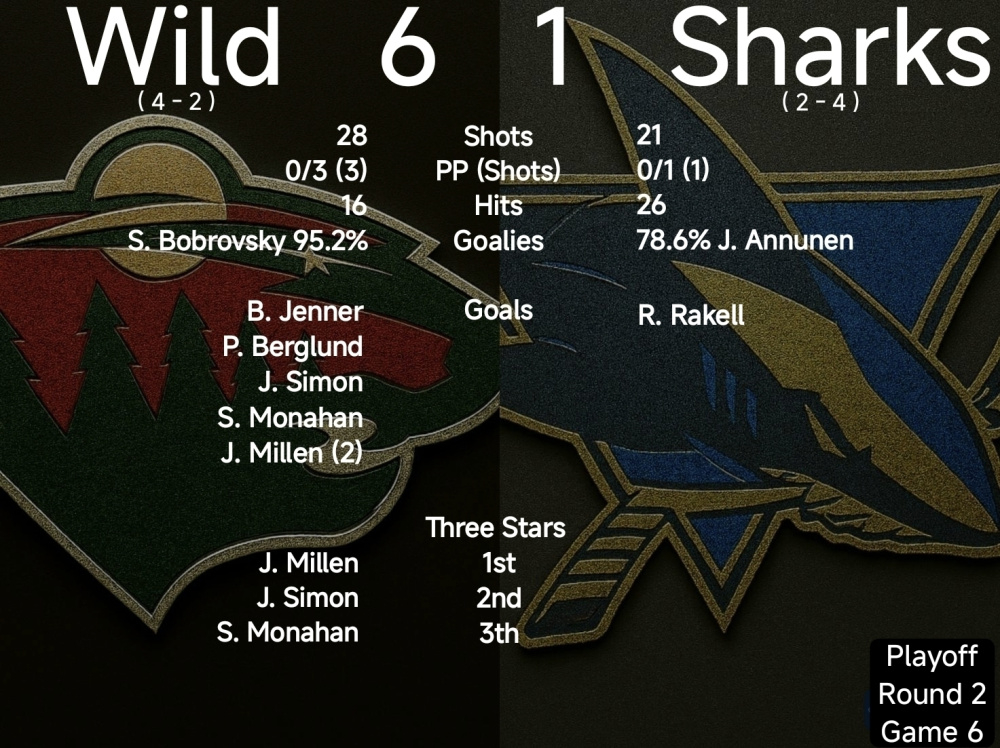 Bár Monahan 2+0, Karlsson és Jenner 1+1, az ütköző sor kivételével a többiek mind pontokkal is hozzájárultak a győzelemhez, igazi csapatjáték volt.