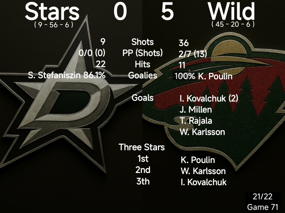 • Egyetlen pontot sikerült elhozni a Kacsáktól, ami nem túl fényes siker, tekintve a helyezésüket. Poulin védett, nem is rosszul, a bukta most a csatársor lelkén szárad. Berglund 1+1-el jól szerepelt.